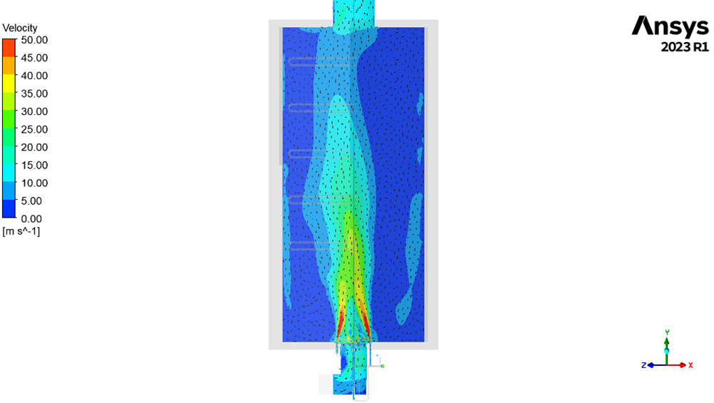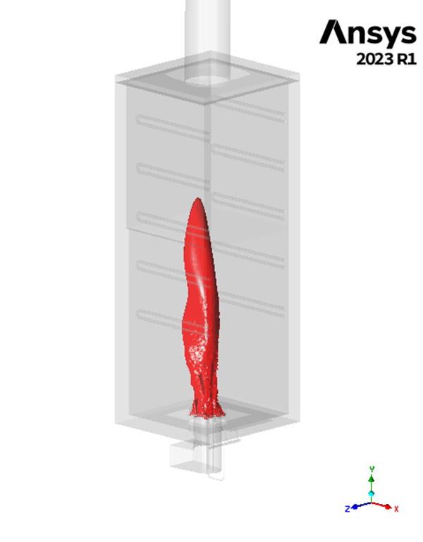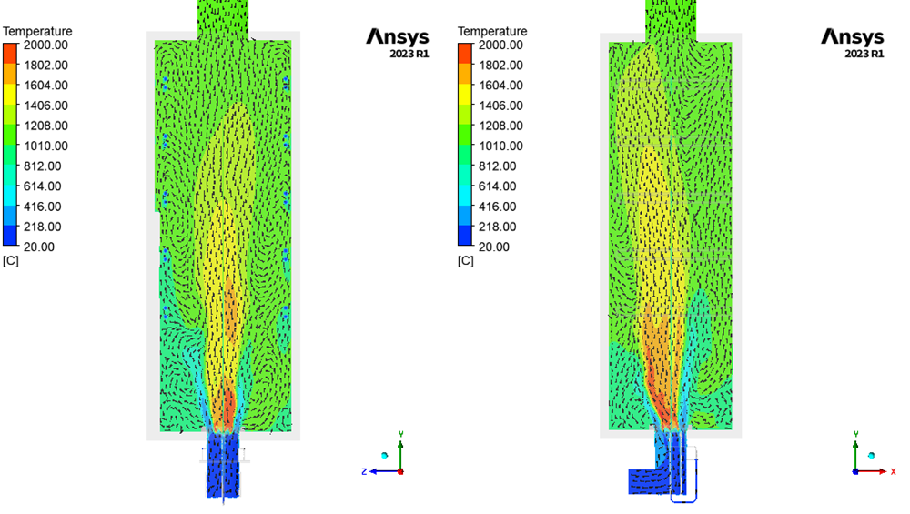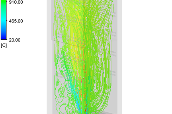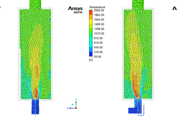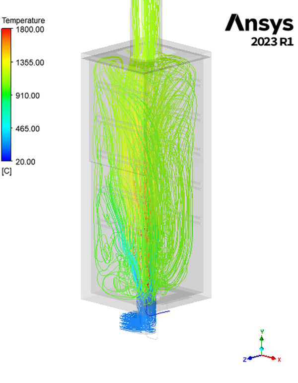 The CFD study analyze the behavior of an up-fired low NOx burner mounted on one of the ten furnaces at ICE testing facility to evaluate pressure loss, flow distribution, temperature path and CO profile.