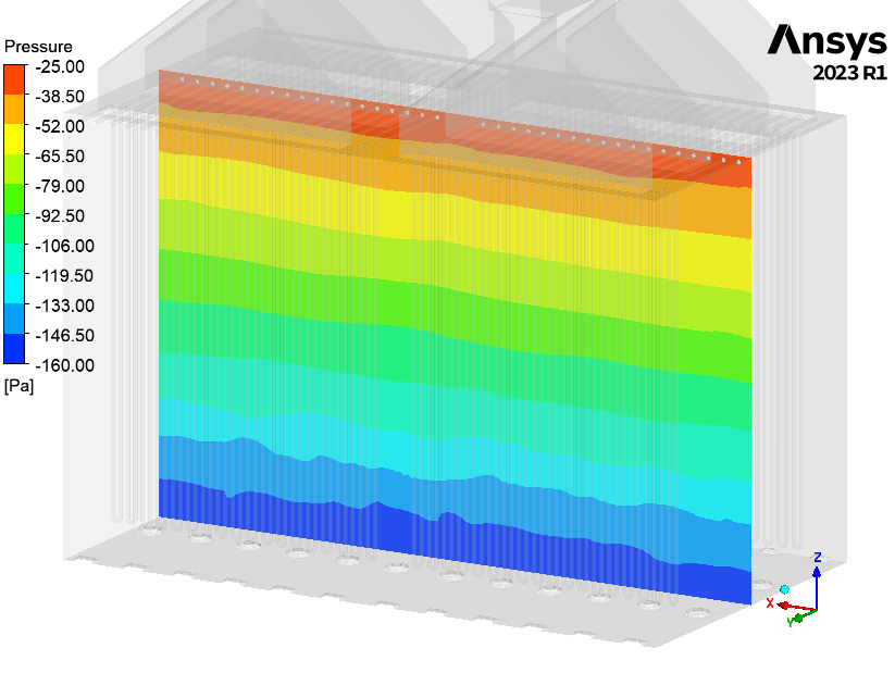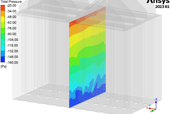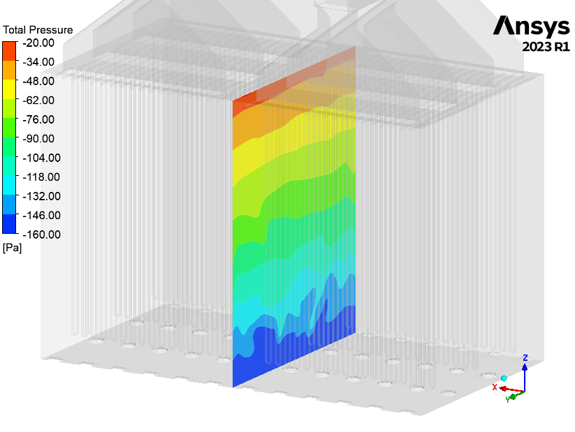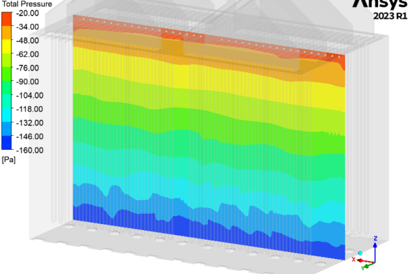 The CFD study determined the behavior of a round flame, low NOx, down firing burner to be installed in a partial oxidation reactor to evaluate its pressure loss, flow distribution, temperature path, CO profile and flame dimension.