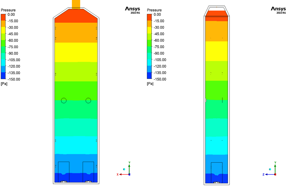 The analysis was performed in steady state, turbulent, reactive and radiative; buoyancy effect has been considered to verify the correct draft.