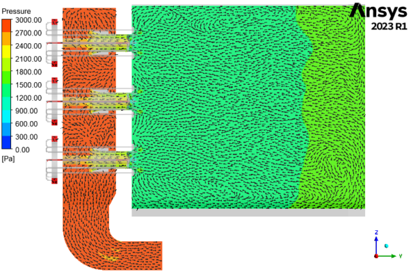1. Non-reactive set-up to optimize air distribution on burners and verify pressure loss