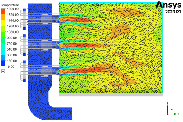 The analysis was instrumental to developing some improvements to the initial burner design.
